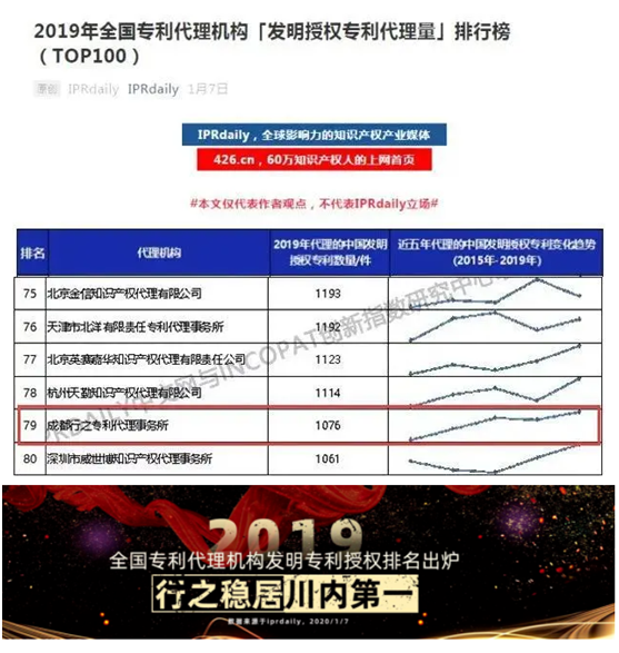 多年來(lái),行之在西南地區(qū)深耕成效顯著。近五年里,行之代理專利申請(qǐng)總量排名四川第一。2019年以1076件的成績(jī),首次突破四川專利代理機(jī)構(gòu)年發(fā)明專利授權(quán)量1000大關(guān),再次拿下四川第一。2020年上半年行之發(fā)明專利授權(quán)量繼續(xù)穩(wěn)居四川第一。
